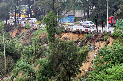 塌方的路基長200多米,從30多米高的路基上塌方滑落下去,形成的泥石流將該路段下方約2000平方米臨時建筑沖垮,其中一間收垃圾的簡易平房被泥石流埋住。有居民反映,道路的排水管道常有人隨便倒淤泥,導致排水不暢,而暴雨則滲入路基泥土中,可能加劇導致了塌方并形成泥石流。(記者姚顥、實習生楊勝利)
