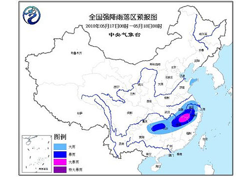 中新網(wǎng)5月17日電 中央氣象臺17日06時繼續(xù)發(fā)布暴雨藍色預(yù)警:預(yù)計,17日08時到18日08時,湖北東部、安徽中南部、江蘇中南部、浙江中西部、江西中北部、湖南中北部、貴州東北部及山東半島等地有大到暴雨。