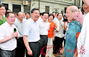 汪洋邊走邊看,認真聽取介紹,要求廣州市總結(jié)獵德村改造的好經(jīng)驗好做法,加快推進城中村和舊城區(qū)改造。