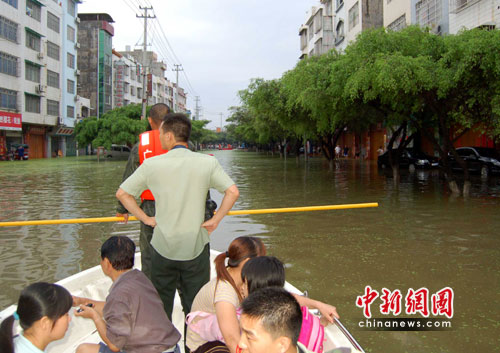 記者在來賓市實(shí)驗(yàn)中學(xué)看到,該校已成為一片湖泊。水深處約有1.6米,已經(jīng)淹過成年男子肩膀。水中七零八落飄散著住戶的生活用品,一樓居民已經(jīng)全部撤離。消防官兵自早上8時許開始對被困師生進(jìn)行救援,直至下午5時,該校1100名被困師生及家屬全部撤至安全地帶。學(xué)校內(nèi)停電并且無法出行,影響了不少居民的正常生活。周邊幾家商鋪圍擋自家門口防止積水流進(jìn)店內(nèi),用各種器皿向外倒水。