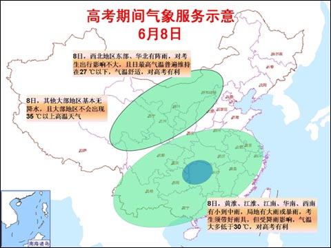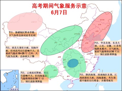 “中國氣象局將嚴(yán)密監(jiān)視天氣變化,及時提供滾動預(yù)報服務(wù)。同時提醒廣大考生和家長,需關(guān)注臨近天氣預(yù)報,減少或避免天氣變化可能帶來的不利影響。”王秀文說。(卞赟)