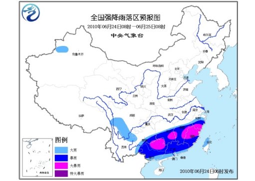 中新網(wǎng)6月24日電 中央氣象臺(tái)6月24日06時(shí)繼續(xù)發(fā)布暴雨黃色預(yù)警:預(yù)計(jì),6月24日08時(shí)到6月25日08時(shí),貴州南部、湖南中南部、江西大部、浙江中南部、福建、廣東大部、廣西等地有大到暴雨;廣西東北部、湖南東南部、江西中部偏東和中部偏西、浙江南部、福建中北部等地的部分地區(qū)有大暴雨;上述部分地區(qū)并伴有短時(shí)雷雨大風(fēng)等強(qiáng)對(duì)流天氣。