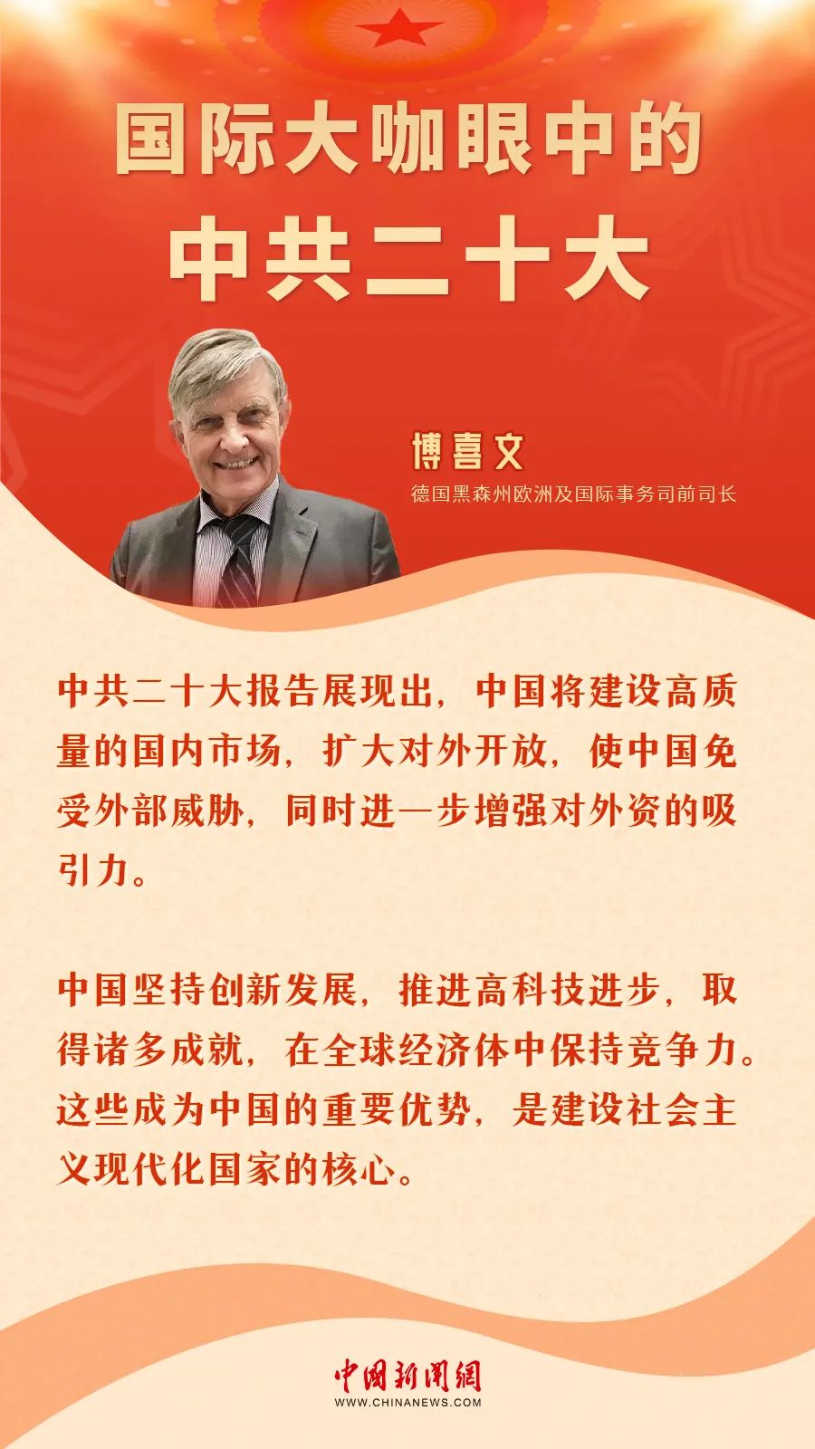 國際輿論表示中共二十大擘畫中國未來發(fā)展藍圖,為今后發(fā)展指明道路,為現(xiàn)代化建設(shè)奠定基礎(chǔ),并評論稱中國一定能實現(xiàn)奮斗目標。