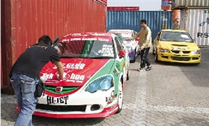 參賽房車經(jīng)九澳貨柜碼頭運(yùn)到。(圖片來(lái)源:澳門日?qǐng)?bào))