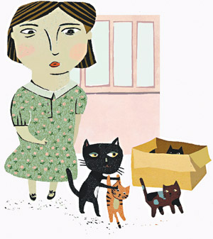 就這樣,我們相處了半個月,彼此沒有任何互動,但戒心已大為放松。情人節(jié)前夕,我在臥室聽到幼貓的叫聲,急忙探頭,發(fā)現(xiàn)它叼著小貓,朝黑忽忽的陽臺急奔,我很傷感,知道分離的時刻到了。那一夜,我輾轉(zhuǎn)難眠。