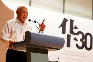 李光耀指出,世界環(huán)境的改變,使得華語(yǔ)和英語(yǔ)成為必要的溝通工具。因?yàn)槿藗內(nèi)绻糜⑽模瑢⒖稍谟⒄Z(yǔ)系社會(huì)及發(fā)達(dá)國(guó)家揮灑自如,而華文則能協(xié)助新加坡人同崛起中的中國(guó)聯(lián)系。