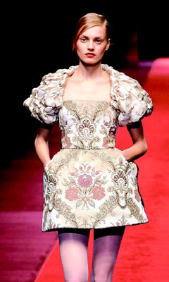 但也有極少數(shù)服裝品牌不信邪,主推青春性感的短裙,例如Louis Vuitton秋冬女裝就以短裙為主,色彩繽紛鮮艷,充滿歡樂愉快的氣息。GUCCI女裝也以利落的短裙為主,搭配黑色長靴或黑褲襪,十分帥氣。