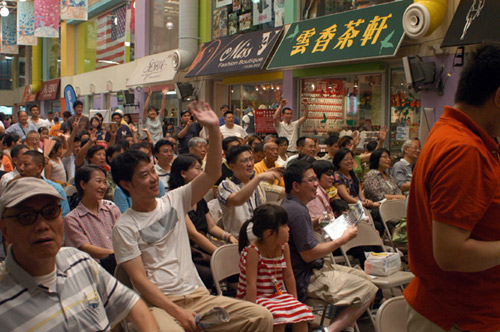 當(dāng)天下午一時(shí)許,法拉盛購(gòu)物中心的大堂內(nèi)已經(jīng)聚集了數(shù)百位華人球迷,座無(wú)虛席,二樓的走廊上也站了不少觀眾,其中以男性觀眾為主,也有婦女和兒童。某廣告公司在這里主辦了民眾一起看世界杯的活動(dòng),邀請(qǐng)了李昌林、譚琳等華文媒體的專業(yè)主持人在現(xiàn)場(chǎng)解說(shuō),觀眾還可以參加抽獎(jiǎng),大獎(jiǎng)是紐約至上海的往返機(jī)票,F(xiàn)場(chǎng)的舞臺(tái)上樹(shù)起了大屏幕,會(huì)場(chǎng)周?chē)有數(shù)臺(tái)小電視機(jī)。隨著比賽的開(kāi)始,進(jìn)入會(huì)場(chǎng)觀戰(zhàn)的人越來(lái)越多。在加時(shí)賽的第26分鐘,西班牙攻入唯一一球,引起了全場(chǎng)的沸騰。據(jù)主辦方介紹,當(dāng)天來(lái)現(xiàn)場(chǎng)的觀眾多達(dá)千人,而前一天半決賽的觀眾也有700余人。
