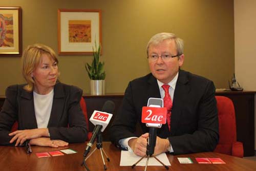 中新網(wǎng)8月19日電 據(jù)澳洲新快網(wǎng)報(bào)道,為爭(zhēng)取Bennelong選區(qū)華人支持,陸克文(Kevin Rudd)、麥嬌(Maxine McKew)8月18日下午在聯(lián)邦政府大廈會(huì)晤華文傳媒,支持被他成為20多年好友的麥嬌,表示如果工黨贏得大選他將在聯(lián)邦政府內(nèi)任職。