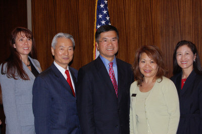 西雅圖生長的駱家輝受到拉斯維加斯亞裔商會(huì)熱忱歡迎,拉斯維加斯亞裔青年學(xué)生代表多人也經(jīng)亞商會(huì)安排與駱家輝見面。他表示欣喜青年學(xué)子參政,并勉勵(lì)大家努力向前。(馮鳴臺(tái))