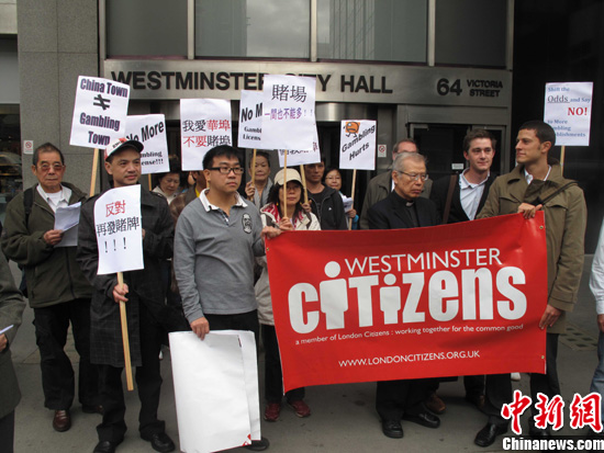 當(dāng)?shù)貢r(shí)間16日,來自“倫敦公民”組織及多個(gè)華社的30余人,前往倫敦威斯敏斯特市政府,呼吁政府停止在倫敦華埠附近發(fā)放新的賭博場(chǎng)所牌照,以保持均衡的社區(qū)發(fā)展及健康的唐人街風(fēng)貌,免使倫敦華埠淪為倫敦“賭埠”。