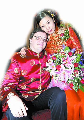 于是當(dāng)Dan向她求婚時(shí),Eve就應(yīng)允了。那邊的Dan在網(wǎng)絡(luò)上立即發(fā)送“I love you so”并跟著一連串笑臉。更令人吃驚的是,Dan當(dāng)時(shí)只有5000元存款,卻用4800元定做了結(jié)婚戒指,并向母親借錢買了機(jī)票,毫不猶豫地飛到中國,當(dāng)時(shí)他只知道Eve住在杭州,連具體的地址都搞不清楚,為此Eve后來還開玩笑地對(duì)Dan說,如果當(dāng)時(shí)我反悔了,不去機(jī)場接你,你在中國可就無家可歸了。