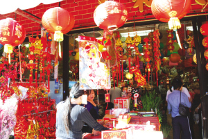 虎年的腳步聲近了,中國(guó)城的大小商家鉚足了勁,準(zhǔn)備來(lái)個(gè)“開(kāi)門(mén)紅”,以虎為圖案的宣傳招牌到處可以看見(jiàn)。走在中國(guó)城的街道上,最能夠吸引大家眼球的是迎新春的“中國(guó)紅”的各種飾物!盎⒛暾胸(cái)”掛件,紅燈籠,紅春聯(lián),紅色的吉祥物、招財(cái)進(jìn)寶的童子,健康長(zhǎng)壽的壽星,顏色全部以紅色為基調(diào),讓整條百老匯大街喜氣洋洋。店員珍妮告訴記者,前來(lái)詢問(wèn)“虎年商品”的華人、“洋人”都很多,他們都很懂中國(guó)新年,知道挑選與生肖有關(guān)的小商品。她說(shuō),不少學(xué)校的老師,也前來(lái)購(gòu)買(mǎi)一些“虎年紅包袋”及可愛(ài)小老虎的飾件;這些東西老師都將用于課堂,讓學(xué)生了解中國(guó)人過(guò)年的民俗,他們還會(huì)給學(xué)生發(fā)“新年紅包”。