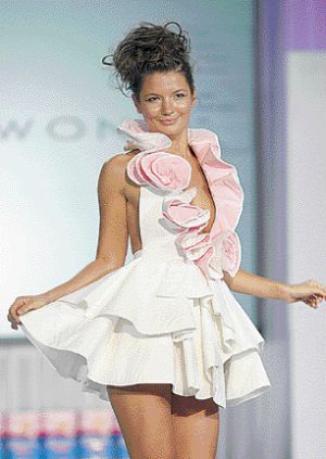 黃嘉宜是來自溫哥華的設計師。學時裝設計的她,在兩年前擁有了自己的時裝公司。她的設計以性感、女性主義和現(xiàn)代感著稱。她表示,在用廁紙設計時裝時,首先想到的是要給觀眾一種很難相信這衣服是用廁紙制成的感覺。因此,她特地要體現(xiàn)出與廁紙的柔軟相反的一種挺括的質(zhì)地,于是要在廁紙下加硬襯。結(jié)果是,她的設計本身就有一種雕塑般的感覺。