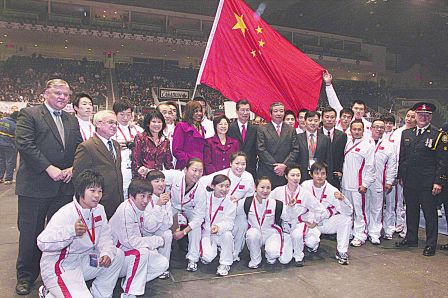 中新網(wǎng)10月26日電 據(jù)加拿大《明報》報道,經(jīng)過1年多的精心策劃,眾多武術(shù)迷期待已久的第10屆世界武術(shù)錦標(biāo)賽當(dāng)?shù)貢r間24日晚在多倫多Ricoh Coliseum體育館隆重開幕。來自71個國家超過500名武術(shù)健兒,首次在多倫多共同亮相,吸引了超過5000名觀眾前往參觀。