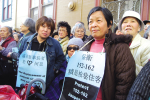 八名年齡在69至89歲的長者,居住在北岸的一棟老樓中公寓已經(jīng)有幾十年。華協(xié)中心公布的資料顯示,大廈易手,新業(yè)主在2007年11月購入后, 為了謀求更多利潤, 在去年以“艾利斯法案”要求所有住客在120天內(nèi)遷出他們已居住了差不多半個世紀的家園, 并把公寓轉(zhuǎn)為“產(chǎn)權(quán)共有”。雖然業(yè)主的逼遷限期早已過了數(shù)周,這些無助的長者堅決在寒冬下守護家園。