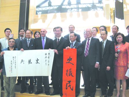 史振民公布中文名字,獲安省旅游廳長陳國治及安省華裔前省議員暨前安河能源廳長黃景培等具份量人士到場力挺。(邱錦宇等)