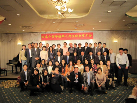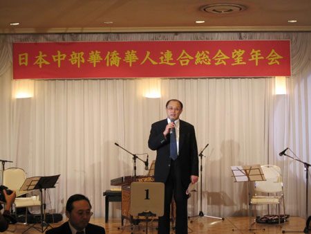 中新網(wǎng)12月16日電 據(jù)日本新華僑報(bào)網(wǎng)報(bào)道,12月13日,日本中部華僑華人聯(lián)合總會2009年度忘年會在三重縣合歡鄉(xiāng)酒店舉行。中部地區(qū)13個(gè)僑團(tuán)、3家中資企業(yè)及各界華僑華人代表80多人歡聚一堂,中國駐名古屋張立國總領(lǐng)事出席活動(dòng)并講話。