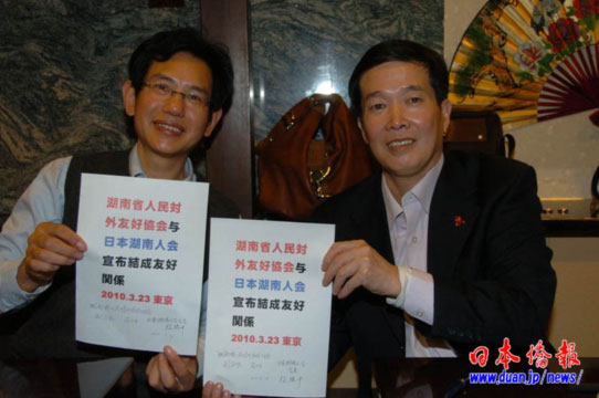 龐力平副會(huì)長及訪日團(tuán)一行高度評價(jià)日本湖南人會(huì)的活動(dòng)搞得好,為推動(dòng)湖南與日本的交流做出了貢獻(xiàn),勉勵(lì)該會(huì)繼續(xù)努力,爭取更大的成績向家鄉(xiāng)人民匯報(bào)。在龐力平副會(huì)長的提議下,日本湖南人會(huì)與湖南省人民對外友好協(xié)會(huì)當(dāng)場簽署了結(jié)為友好關(guān)系的文件。
