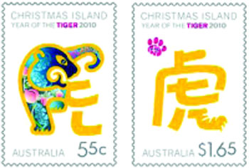 中新網(wǎng)1月13日電 據(jù)澳洲《星島日報》報道,為紀(jì)念2010農(nóng)歷新年虎年的來臨,澳洲郵局特別推出一套由墨爾本設(shè)計師潘德妮設(shè)計的別致虎年郵票。