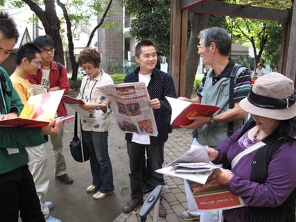 10月4日,日本僑報(bào)社創(chuàng)辦的星期日漢語角舉行第109次交流會(huì)。會(huì)上,剛剛從北京參加國慶觀禮回來的日本僑報(bào)社總編輯、日本湖南人會(huì)會(huì)長段躍中,向漢語角參加者介紹了10月1日在天安門廣場舉行的中國建國60周年紀(jì)念大會(huì)等一系列國慶活動(dòng),還傳閱了中國60華誕慶典的有關(guān)報(bào)道,欣賞了國慶專題郵票。