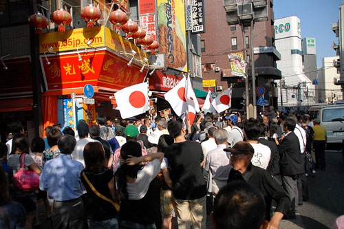 顧梓芹還介紹說(shuō),去年9月26日,曾經(jīng)有30多名日本人拿著日本國(guó)旗到我們店前來(lái)騷擾,高喊“堅(jiān)決反對(duì)民主黨的外國(guó)人政策!”“支那人滾回去!”等等口號(hào),在這里鬧了整整兩個(gè)多小時(shí),搞得我們沒(méi)有辦法營(yíng)業(yè)。他們還在這里動(dòng)手動(dòng)腳,拍我們女工作人員的肩膀,拉扯她們的衣服,還好,這些都得了警方的及時(shí)制止。事后,我們到池袋警察署遞交了被害登錄,但警方拒絕接受,說(shuō)“你們這是政治問(wèn)題”。這實(shí)在讓人搞不明白。這幾天,東京都警視廳機(jī)動(dòng)隊(duì)、組織犯罪對(duì)策科以及池袋警察署不斷來(lái)人,一方面對(duì)我們進(jìn)行保護(hù)性指導(dǎo),要求我們?cè)谀且惶彀熏F(xiàn)金等物收管好,讓員工也冷靜對(duì)待,另一方面表示他們當(dāng)天也會(huì)到現(xiàn)場(chǎng),對(duì)我們進(jìn)行保護(hù)。