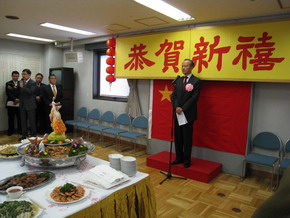 新年會(huì)在嘹亮的國歌聲中開始。崔天凱大使代表中國駐日本大使館向僑胞們致以新年的問候。他說,過去的一年對(duì)祖國人民和海外僑胞都是不平凡的一年,我們隆重舉行新中國成立六十周年慶典,努力克服金融危機(jī)實(shí)現(xiàn)經(jīng)濟(jì)平穩(wěn)較快增長,果斷處置新疆“七五”事件維護(hù)領(lǐng)土主權(quán)完整和民族團(tuán)結(jié),堅(jiān)持和平發(fā)展實(shí)現(xiàn)兩岸全面“三通”等,祖國建設(shè)取得新發(fā)展,人民生活水平有新提高,中國國際地位和影響不斷擴(kuò)大,日益發(fā)揮著舉世矚目的重要作用。