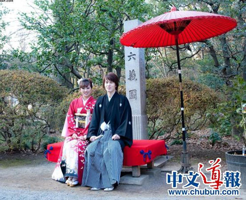 2010年2月7日,記者在日本舊古河庭院見到了這一對幸福的夫妻。他們已經(jīng)穿上婚紗和禮服,準(zhǔn)備拍攝婚紗照了。