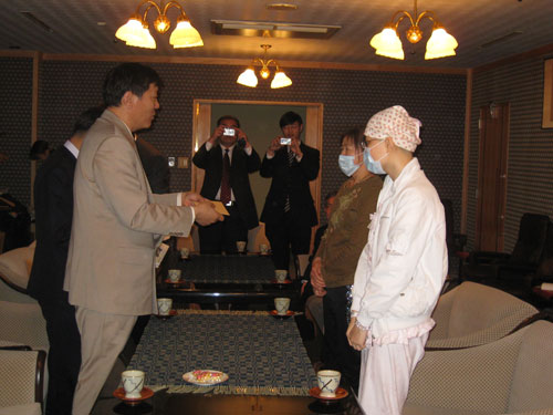 程雯激動(dòng)地對(duì)趙大為領(lǐng)事表示:“是祖國(guó)和日本各界友人和臺(tái)灣同胞救了我,我一定要報(bào)答大家的恩情!背迢┑哪赣H吳國(guó)榮不停地流著眼淚,她說(shuō):“大家救了我女兒的命,女兒如果病好了,將來(lái)一定要報(bào)效祖國(guó),做中日友好的橋梁!