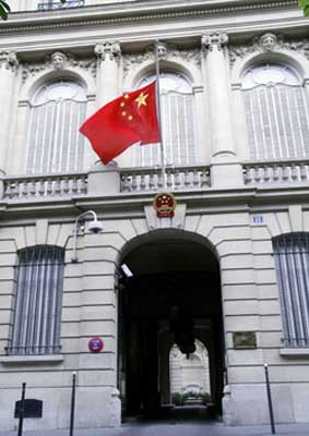 中新網(wǎng)5月20日電 據(jù)中國外交部網(wǎng)站消息:5月19日巴黎時間8時28分(北京時間14時28分),中國駐法使館全體工作人員在孔泉大使帶領(lǐng)下與國內(nèi)同步舉行哀悼活動。使館大廳懸掛著“深切哀悼5·12地震遇難同胞”橫幅,氣氛莊嚴肅穆,大家懷著沉痛心情,肅立默哀三分鐘。