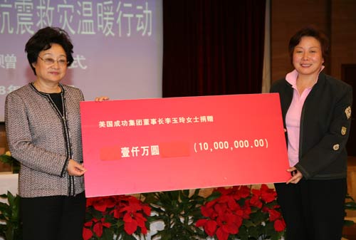 3、美國成功集團(tuán)董事長李玉玲捐贈(zèng)1000萬元人民幣;