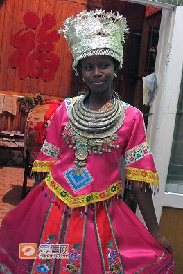 當晚,在熱情的中國家長帶領(lǐng)下,漢語橋選手“黑珍珠”闖三關(guān):對山歌、喝米酒、擊鼓后,順利入住苗家,當穿上苗族服裝,“黑珍珠”興奮地在鏡子面前轉(zhuǎn)了幾圈,表達喜悅的心情。(李湘)