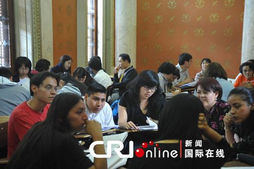 在本次培訓(xùn)班上,有一個人一直吸引著記者的目光,她的雙鬢已經(jīng)斑白,一縷麻花辮上系著一個小小的中國結(jié)。她名叫庫埃亞爾,是這期培訓(xùn)班里年齡最大的學(xué)員。1985年,庫埃亞爾曾來到中國研修漢語語言學(xué),兩年后她回到墨西哥,開始從事漢語教學(xué),一轉(zhuǎn)眼便是二十余載。對于學(xué)習(xí)漢語,庫埃亞爾有自己獨到的體會。她說:“我覺得如果你開始學(xué)習(xí)漢語,你不能停,因為沒有辦法,你停不了,停了不行,因為漢語是比較難、也比較豐富的一個語言。所以如果你停止學(xué)習(xí),你的漢語水平(就會)越來越差。學(xué)習(xí)漢語(讓)你有一個非常大的機會了解到世界很大。所以我覺得真的學(xué)習(xí)漢語越學(xué)越喜歡!