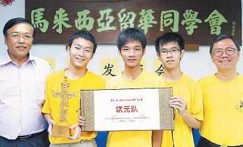 3位為國爭光的同學(xué)分別是巴生興華中學(xué)的黃家耕、山打根育源中學(xué)的張愷程以及吉隆坡中華獨中的傅仰輝,帶隊及指導(dǎo)老師是巴生興華中學(xué)的謝錫福老師。