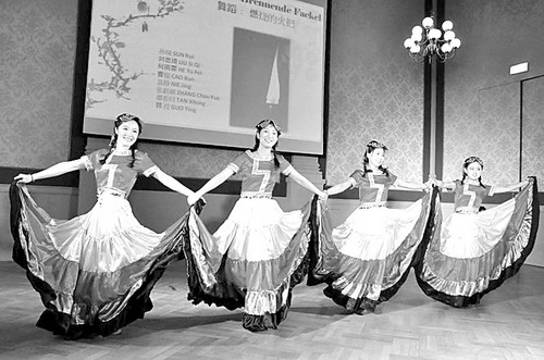 據(jù)悉,維也納大學(xué)孔子學(xué)院成立3年來(lái),已舉辦了300多場(chǎng)各類活動(dòng)。圖為中國(guó)大學(xué)生在表演舞蹈《燃燒的火把》。(方祥生 攝)
