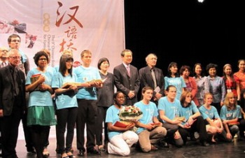 孔泉向所有積極參與“漢語橋”比賽的法國學(xué)生、向法國漢語總督學(xué)白樂桑等長期致力于法國漢語教學(xué)推廣工作的評委會專家們、向承辦比賽的巴黎第十大學(xué)表示感謝,并向從中國國內(nèi)遠(yuǎn)道而來、專門對比賽進(jìn)行現(xiàn)場報(bào)道的湖南衛(wèi)視攝制組致意,相信他們的報(bào)道將使更多中國公眾了解“漢語橋”比賽、一睹法國選手的風(fēng)采,也期待法國選手在中國舉行的決賽中取得更好成績。