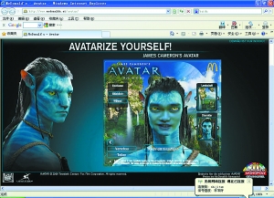 美國科幻大片《阿凡達(dá)》正在成為國內(nèi)網(wǎng)民熱烈討論的對(duì)象。在百度貼吧內(nèi),“阿凡達(dá)吧”內(nèi)帖子數(shù)量已經(jīng)超過13萬。眾多網(wǎng)民熱烈討論《阿凡達(dá)》電影劇情與特技,將其與《三槍》等國產(chǎn)大片電影進(jìn)行比較,而且動(dòng)手制作自己的PS,變身為阿凡達(dá)。麥當(dāng)勞網(wǎng)站推出的“阿凡達(dá)變臉器”軟件,可以將用戶上傳的照片直接制作成納美人的模樣。網(wǎng)友只要提供一張清楚的照片,利用該軟件,就可以在不到2分鐘的時(shí)間內(nèi)變身為潘多拉星球上的納美人,擁有納美人兩個(gè)招風(fēng)耳、藍(lán)色皮膚、紅色的眼睛。該軟件分成了男版和女版,供網(wǎng)民自主選擇,還可以自主更換背后場景。網(wǎng)民不僅制作李宇春、姚明、郭德綱、阿嬌、小沈陽等娛樂明星的“納美照”,而且自己紛紛變身為“納美人”,在網(wǎng)上曬出來供大家欣賞。記者發(fā)現(xiàn),在百度上用“阿凡達(dá)變臉器下載”進(jìn)行搜索,能找到2000多個(gè)網(wǎng)頁鏈接。許多網(wǎng)站還推出了該軟件的使用教程,吸引網(wǎng)民點(diǎn)擊。一家網(wǎng)站上還有網(wǎng)友發(fā)起了“納美人”選美大賽,網(wǎng)民紛紛上傳自己的“阿凡達(dá)頭像”,由網(wǎng)民投票進(jìn)行PK。