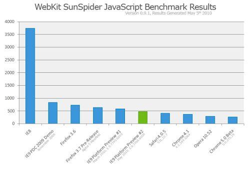 在JavaScript測(cè)試中,新版本較IE8有較大提升,但仍落后于Chrome、Opera和Safari。