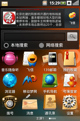 消息,5月中下旬中移動將正式公開發(fā)布Ophone手機(jī)。這將意味著中國自主研發(fā)的手機(jī)操作系統(tǒng)將正式走上前臺,向國際主流手機(jī)操作系統(tǒng)邁進(jìn)。日前中國移動研究院Ophone項(xiàng)目組向“移動Labs”網(wǎng)站展示了Ophone的一些特色細(xì)節(jié)并通過“移動Labs”網(wǎng)站公布了最終版主界面: