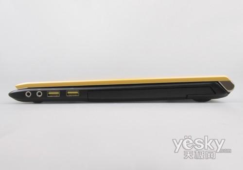 機(jī)身右側(cè)除了占用空間最大的光驅(qū)模塊插槽外,還加入了音頻I/O接口以及一對(duì)USB2.0接口,可用于外接USB存儲(chǔ)或控制設(shè)備,并為需要輔助供電的設(shè)備提供更方便的雙接口設(shè)計(jì)。