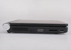 昭陽M10的機身側(cè)面接口比較簡單,但也涵蓋了基本的使用需求。機身前端沒有設置任何功能接口,不過內(nèi)置了一組雙聲道立體聲音響,在閑暇時放上一段舒心的音樂也是不錯的選擇。機身右側(cè)設置了一對音頻I/O接口、一枚USB2.0接口、一枚RJ45網(wǎng)絡接口以及轉(zhuǎn)軸上的安全鎖孔,左側(cè)除電源插孔外還加入了VGA視頻接口、SD讀卡器以及USB2.0接口,足以滿足外接存儲設備或顯示設備的需要。