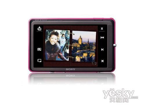 在相機(jī)背側(cè)是一塊3.5英寸16:9規(guī)格的TFT LCD觸摸屏,具有92.1萬像素,如此高端的液晶屏也消費類DC中算是頂級配置了。這款相機(jī)還在機(jī)身內(nèi)置了一塊容量為4GB的內(nèi)存,既可以直接使用機(jī)身內(nèi)存拍攝,也可以使用記憶棒存儲照片。豐富的相冊功能亦稱為本機(jī)的一大亮點,在92.1萬像素3.5英寸的大尺寸液晶屏的展現(xiàn)下,用T700欣賞照片也一定頗為享受。