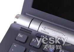 轉(zhuǎn)軸部分有一個(gè)STAMINA和SPEED模式切換鍵,這個(gè)切換鍵是專門針對(duì)這款機(jī)器獨(dú)特配置所設(shè)計(jì)的,由于Z55配備了雙顯卡,并且NVIDIA與IntelX4500并不支持熱切換,為了在省電和性能之間方便切換,索尼Z55加入了這個(gè)按鍵,在“持久(STAMINA)模式”中,它使用的是集成顯卡(移動(dòng)式英特爾®圖形媒體加速器 4500MHD)。而在“(SPEED)模式”中,VAIO Z5系列使用的是獨(dú)立顯卡(NVIDIA GeForce 9300M GS (GPU) 顯卡,用戶可根據(jù)實(shí)際需求,在使用中做不同模式切換。