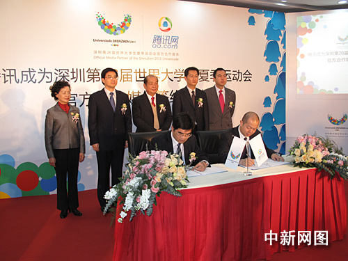 中新網(wǎng)1月15日電 2010年1月15日,騰訊公司與深圳第26屆世界大學(xué)生夏季運(yùn)動(dòng)會(huì)組委會(huì)執(zhí)行局(以下簡(jiǎn)稱大運(yùn)會(huì)執(zhí)行局)簽約,成為深圳2011世界大運(yùn)會(huì)第9家官方合作媒體。繼北京奧運(yùn)會(huì)與上海世博會(huì)以后, 騰訊公司再度與國(guó)際盛事“聯(lián)姻”。