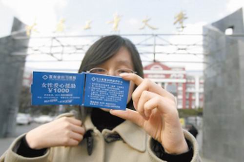 在折疊鏡的背面印有該醫(yī)院婦科診療中心的三項(xiàng)宣傳,其中第一項(xiàng)聲稱憑此鏡可免婦科檢查費(fèi)、B超費(fèi)、專家掛號(hào)費(fèi)、早孕檢查費(fèi)等。