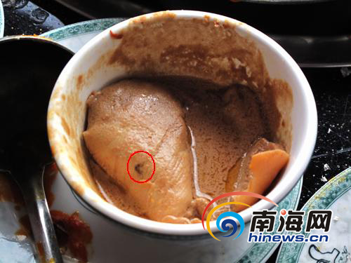 針對(duì)此事,南海網(wǎng)記者采訪了重慶劉一手火鍋的經(jīng)理王女士,她解釋說,周先生第一次吃到的不是頭發(fā),而是火鍋料理!拔覀兊幕疱伒琢戏帕撕芏喾N料理,而且都是一次性,應(yīng)該不會(huì)存在有頭發(fā)掉進(jìn)鍋里的可能。后面2次情況,我們店方也向消費(fèi)者賠禮道歉了,并提出給對(duì)方打折,但他們不接受,要求我店方免單和賠償精神損失費(fèi),這點(diǎn)我們不接受。”