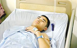 昨日下午,記者在醫(yī)院目睹了薛梟經(jīng)受的系列治療,過程很痛楚,但他很能忍耐。面對來訪者關(guān)心的詢問,他笑著回答:“沒事!睂(shí)際上他右臂截肢后傷口一直很痛,夜里很難安眠。薛梟被埋時(shí)耳朵進(jìn)了沙石,這些沙石要掏出來為防以后失聰。掏耳朵時(shí)疼極了,還出了血,需要等結(jié)疤后再次掏。他的右腿肌肉因?yàn)槭軌海蛱扉_始理療。此外他的肺部在被埋時(shí)吸入異物,導(dǎo)致他咳嗽不斷。母親譚忠燕又痛心又自豪地說:“這孩子很能吃苦,我相信他一定能挺過去!