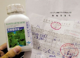 7月9日,消費者張先生投訴稱,他和朋友在位于遠大路1號的金象大藥房購藥時,店員極力推薦了名為“納瑞仕番茄紅素膠囊”的“保健品”。起初,他和朋友并沒有動心,但聽到店員說可以“抗氧化、美容養(yǎng)顏”時,遂決定購買一盒回去試用。買回后,張先生卻發(fā)現(xiàn)這個番茄紅素膠囊根本不是保健品,而是一種普通食品。因為產(chǎn)品標簽上標的是食品衛(wèi)生許可證“溧衛(wèi)食字(2006)第0763號”。記者在張先生提供的發(fā)票上看到,在蓋著“北京金象大藥房醫(yī)藥連鎖有限責任公司”公章的北京市商業(yè)企業(yè)專用發(fā)票上,商品名稱一欄赫然填寫著“保健品(納瑞仕番茄紅素膠囊)”。