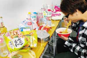 學(xué)生小江寧愿在宿舍吃泡面也不想去飯?zhí)贸燥。信息時報記者 葉偉報 攝