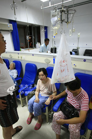 家住中原路990弄的劉小姐在聞到刺激性味道,暈倒在地,被家人送入醫(yī)院打點滴。劉小姐一邊打點滴,一邊向記者敘述情況:“很沖鼻,就是感覺讓人很惡心!眲⑿〗愀赣H劉先生說,“外面氣味比室內(nèi)還重,當時女兒就暈過去,然后嘔吐!